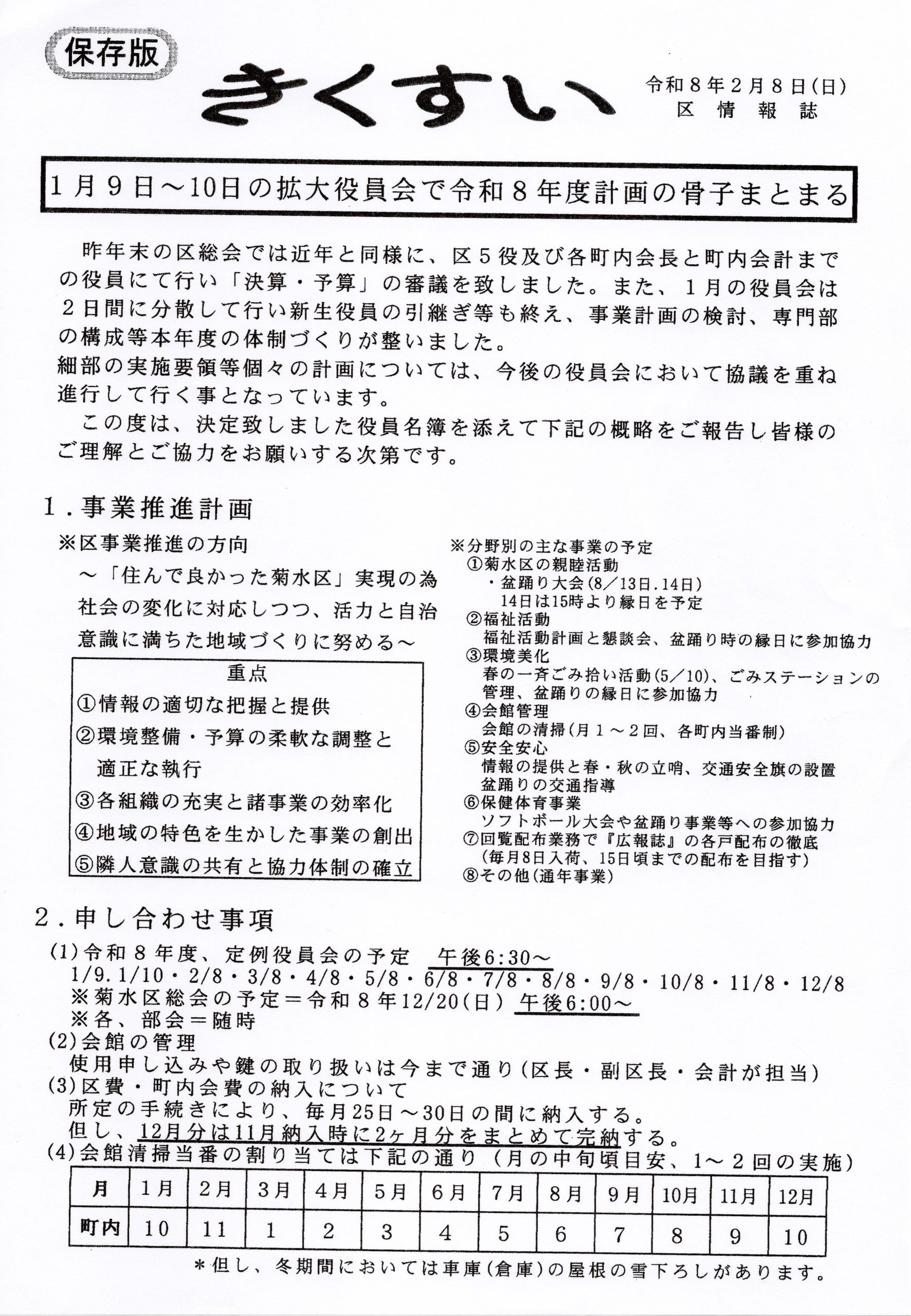 | 区長報告 1月 | 区長報告 2月 | 区長報告 3月 |